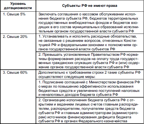 Таблица 8.3 Ограничения для субъектов РФ при получении межбюджетных трансфертов из федерального бюджета