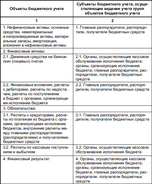 Объекты и субъекты бюджетного учета представлены в табл. 11.1.