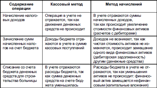 Таблица 11.2 Примеры отражения в бюджетном учете отдельных операций с использованием кассового метода и метода начислений