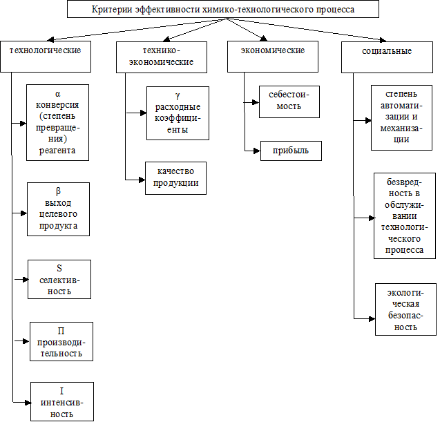 Производительность и интенсивность характеризуют эффективность работы отдельных аппаратов. Величина этих показателей определяется эффективностью использования возможностей, как самой химической реакции, так и реактора, в котором она проводится. Производительность и интенсивность в обобщенном виде содержат величины выхода целевого продукта и средней скорости процесса.