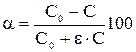 С учетом коэффициента изменения объема реакционной смеси конверсия реагентов рассчитывается по формуле (7).