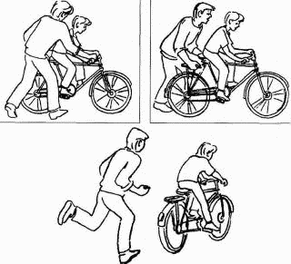 Еще через некоторое время оказывается, что вам можно оставить руль и бежать сзади, лишь поддерживая седло. Наконец, вы чувствуете, что можете временно отпустить седло, давая ребенку проехать самостоятельно несколько метров, хотя готовы подхватить его снова в любую минуту. И вот настает момент, когда он уверенно едет сам!