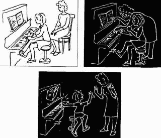 "Я очень хочу выучить дочку играть на фортепьяно, — рассказывает мать восьмилетней девочки. — Купила инструмент, наняла учителя. Сама когда‑то училась, да бросила, теперь жалею. Думаю, хоть дочка будет играть. Просиживаю с ней за инструментом часа по два каждый день. Но чем дальше, тем хуже! Сначала не засадишь ее заниматься, а потом начинаются капризы и недовольства. Я ей одно — она мне другое, слово за слово. Кончается тем, что она мне говорит: «Уходи, без тебя лучше!». А я ведь знаю, стоит мне отойти, как у нее все кувырком летит: и руку не так держит, и не теми пальцами играет, и вообще все быстро заканчивает: «Я уже позанималась».