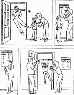 Петя рос хилым, неспортивным мальчиком. Родители уговаривали его делать зарядку, купили турник, укрепили его в пролете двери. Папа показал, как надо подтягиваться. Но ничего не помогало — мальчик по‑прежнему не испытывал интереса к спорту. Тогда мама вызвала Петю на соревнование. На стену повесили листок бумаги с графами: «Мама», «Петя». Каждый день участники отмечали в своей строчке, сколько раз они подтянулись, присели, подняли ноги «уголком». Много упражнений подряд делать было не обязательно, да и, как выяснилось, ни мама, ни Петя этого не могли. Петя стал зорко следить за тем, чтобы мама его не перегнала. Правда, ей тоже пришлось потрудиться, чтобы не отстать от сына. Соревнование продолжалось месяца два. В результате мучительная проблема зачетов по физкультуре была благополучно разрешена.