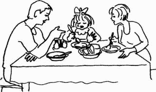 ПАПА: Сядь и ешь без капризов! (Приказ.)