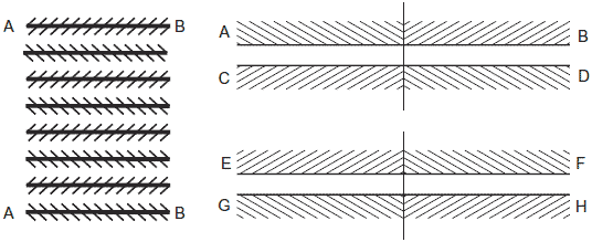 Еще удивительнее правый чертеж того же рисунка. Линии АВ и CD представляются изогнутыми и обращенными вогнутыми сторонами друг к другу. Линии EF и GH тоже изогнуты, но обращены одна к другой своими выпуклыми сторонами. Это «очевидно». Но посмотрите на наши линии так, как было описано выше, чтобы взгляд скользил вдоль них, – и перед вами будут совершенно прямые, как рельсы, параллельные прямые!