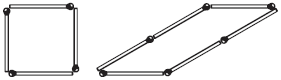 Так как длина спички вам известна – 5 см, то вы легко определите площадь вашего четыреугольника в сантиметрах: 5x10=50 кв. см. Задача состоит в следующем: не изменяя длины обвода [25] этого четырехугольника, изменить форму его так, чтобы площадь его уменьшилась вдвое, т. е. равнялась 25 см. Как это сделать? Пусть читатель обратит внимание на то, что речь идет о составлении четырехугольной фигуры (а не непременно прямоугольной): углы новой фигуры не обязательно должны быть прямые.