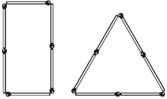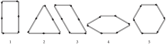 Фигура с наибольшей площадью Задача 35‑я Сейчас мы составили из 6‑ти спичек прямоугольник и равносторонний треугольник. Но из того же числа спичек можно составить еще и другие фигуры, имеющие одинаковый обвод. Некоторые из этих фигур изображены на рис. 49.