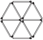 Покажем кстати, как можно сложить из спичек правильный шестиугольник. Для этого нужно примкнуть друг к другу 6 равносторонних треугольников, как показано на рис. 50, и затем вынуть внутренние спички.