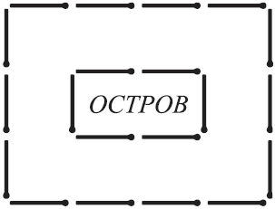 Мост из двух спичек Задача 36‑я На рис. 51 вы видите остров, окруженный каналом. Ширина канала как раз равна длине одной спички, так что перебросить мостик через канал с помощью одной спички нельзя: невозможно опереться концами о берега канала.