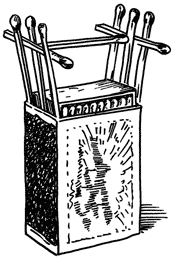 Опыт удается, что называется, без отказа. Надо только соблюдать осторожность: от выброшенной – иногда довольно далеко – горящей спички может загореться что‑нибудь в комнате. Эффект получается внушительнее, если устроить из спичек более сложное сооружение, вроде изображенного на рис. 60.