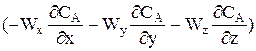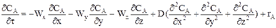 отражает изменение концентрации реагента А в элементарном объеме в результате переноса его путем диффузии. Вместе эти члены характеризуют суммарный перенос вещества в движущейся среде путем конвекции и диффузии; в общем уравнение материального баланса им соответствует член mА конвек..