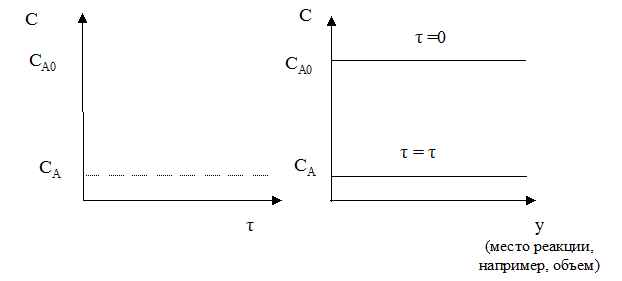 В таком реакторе создается такое интенсивное перемешивание, что в каждый момент времени концентрация реагентов одинакова по всему объему реактора и изменяется лишь во времени, по мере протекания химической реакции.