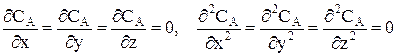 Так как вследствие интенсивного перемешивания все параметры одинаковы по всему объему реактора, в любой момент времени производная любого порядка от концентрации по осям x,y,z равна нулю.