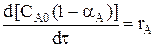 При Vреакци.смеси = const CA = CA0 (1-αА).
