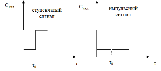 Возмущение на входе (входной сигнал) может быть ступенчатым или импульсным.