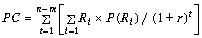 Разница между этими формулами состоит в том, что в первой вероятность ухода не принимается в расчет: суммирование идет по (m - 1) позициям (позиция m - уход из организации). Введение состояния ухода во вторую формулу (РС) снижает вероятности нахождения в прочих позициях по сравнению с первой формулой. В результате реализуемая стоимость получается меньше условной. Поскольку позиционные стоимости взяты в денежных единицах, то и условная, и реализуемая стоимости определяются в денежных единицах.