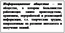 На определенном этапе развития информационной индустрии рождается информационное общество, создается единое, не разделенное национальными границами информационное сообщество людей.