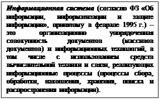 Добавление к понятию «система» слова «информационная» отражает цель ее создания и функционирования. Информационные системы (ИС) обеспечивают сбор, хранение, обработку, поиск, выдачу информации, необходимой в процессе принятия решений задач из любой области. Они помогают анализировать проблемы и создавать новые продукты.