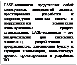 В области создания систем автоматизированного проектирования (САПР) доминируют структурные подходы, так как они максимально приспособлены для взаимодействия с пользователями, не являющимися специалистами в области ИТ. Адекватными инструментальными средствами, поддерживающими структурный подход к созданию ИС, являются CASE -системы автоматизации проектирования.