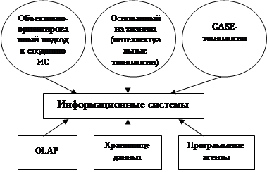 Для различных классов систем используются разные методы разработки, определяемые типом создаваемой системы и средствами реализации. Спецификации этих систем, в большинстве случаев, состоят из двух основных компонентов – функционального и информационного. Современные методы создания ИС разного назначения базируются в основном, на трех подходах: объектно-ориентированная технология, основанная на знаниях (интеллектуальная) технология и CASE-технология.