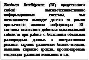 Аналитические информационные системы. Аналитические информационные системы применяются на стратегическом уровне управления компанией. Потребность в них возникает по мере достижения компанией достаточно высокой культуры управления. В свою очередь, внедрение таких систем стимулирует рост квалификации управляющего персонала.