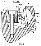 Дисковая фреза (рис. 3) содержит корпус 1, в пазу 2 которого при помощи винта 3, клина 4 с канавкой 5 и шарика 6 закрепляется режущая пластина 7, установленная на подкладке 8 со сферической опорной поверхностью 9, которая входит в сферическую выемку в пазу 2. При этом центры шарика 6, сферической выемки 10 под шарик, сферической опорной поверхности 9 и сферической выемки 11 расположен в одной точке, а канавка 5 находится на клине 4 на той его грани, которая располагается параллельно оси затяжного винта.