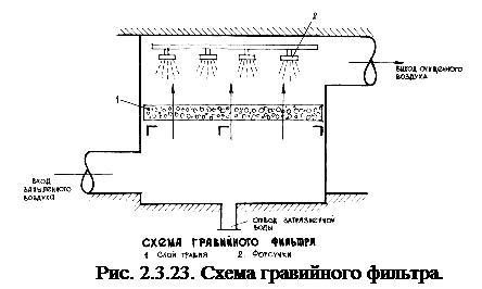 Фильтры из сыпучих материалов (рис.2.3.23.) состоят из одного, двух, трех слоев гравия, песка и других материалов. Однако подобные виды фильтров применяются очень редко.