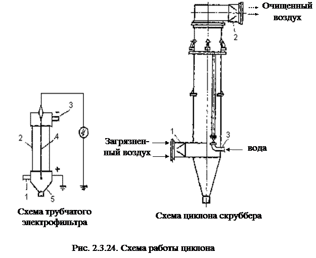Работа электрофильтров основана на создании сильного электрического поля при помощи тока высокого напряжения (50-100 кВ), подводимого к коронирующим электродам (рис.2.3.24).