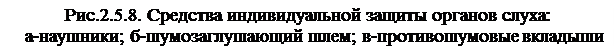 Простейшими из внутренних противошумных средств считаются вата, марля, губка и т.д., вставленные в слуховой канал. Вата снижает шум на 3 – 14 дБ в полосе частот от 100 до 6000 Гц; вата с воском - до 30 дБ. Применяются предохранительные втулки (ушные вкладыши «Беруши»), плотно закрывающие слуховой канал и снижающие шум на 20 дБ (рис. 2.5.8.).