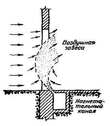 Воздушные и воздушно-тепловые завесы предназначены для исключения проникновения в помещение холодного воздуха. Воздушные завесы бывают с подачей холодного и подогретого воздуха сверху, снизу или с двух боковых сторон ворот или входных дверей. Критерием качества работы вентиляционной системы, обеспечивающей воздушные и воздушно-тепловые завесы, является температура воздуха в рабочих помещениях на постоянных рабочих местах. При открывании дверей (ворот) она не должна быть ниже: 14 0С при легкой физической работе; 12 0С при работе средней тяжести; 8 0С при тяжелой работе.