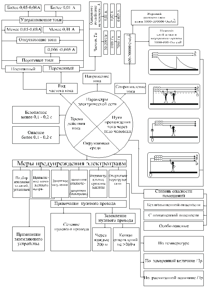- параметров электрической цепи (напряжения, сопротивления человеческого тела);