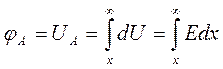 Потенциал точки А равен суммарному падению напряжения от точки А до земли (бесконечно удаленной точки с нулевым потенциалом)