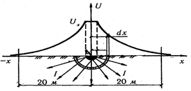 Рис 3.4.5 Растекание элетрического потенциала на грунте при коротком замыкании токовода на землю