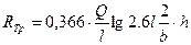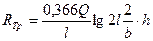 где Q1; Q2 —удельное электрическое сопротивление соответственно верхнего и нижнего слоя земли, Ом-м; h1—толщина верхнего слоя земли, м; a, b—безразмерные коэффициенты, зависящие от соотношения удельных электрических сопротивлений слоев земли. Если Qi>Q2, то a=3,6, b=0,1; если Q1<Q2, то a=1,1 ×102, b=0,3×10-2.