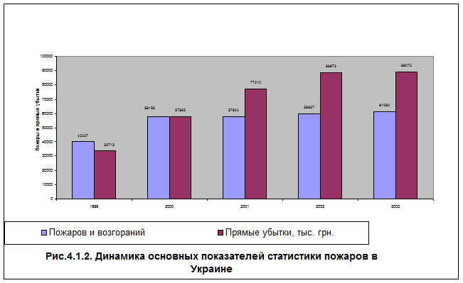 Согласно данных международной статистики, при возрастании численности населения на 1% количество пожаров увеличивается приблизительно на 5%, а убытки от них возрастают на 10%. По данным, которые поступили в УкрНИИПБ МЧС Украины от ГУ(У) МЧС Украины в областях, АР Крым, городах Киеве и Севастополе, за 12 месяцев 2003 года в стране зарегистрировано 61тыс. 280 пожаров и возгораний.