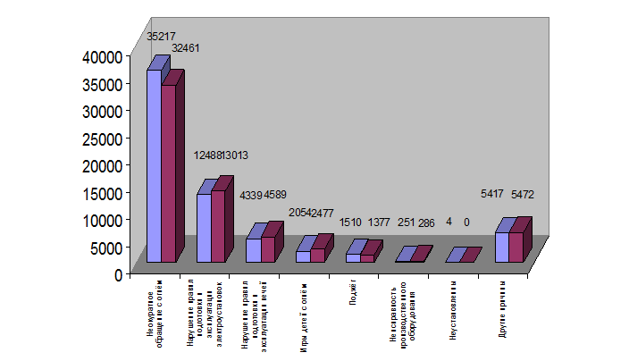 На протяжении последних лет причины возникновения пожаров остаются прежними. Постоянно растет количество пожаров, возникающих вследствие небрежного обращения с огнем, больше половины (57,5%) пожаров и возгораний случается именно по этой причине. Этому, прежде всего, способствует сложная социально-экономическая обстановка в государстве.