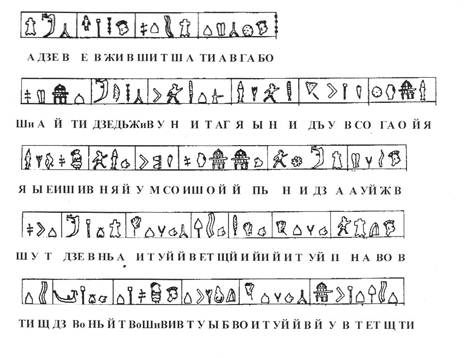 Второй метод дешифровки (иконографический) заключался в том, что слоговые значения брались из уже дешифрованных видов письма. При этом важную роль играет тождество или сходство знаков. В результате применения указанных двух методов были получены фонетические значения иероглифов ФД (см. рис. 2).