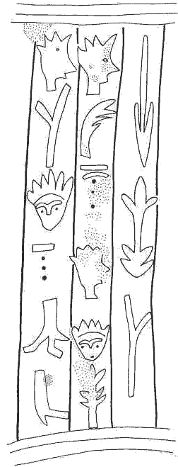 Второе слово в столбце посередине состоит также из шести знаков. Знак II,1 идентичен знаку I,1.