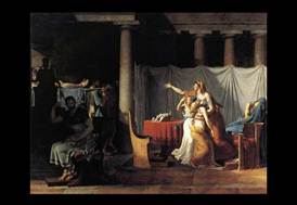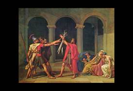 | Клятва Горациев (1784 г.) | Ликторы приносят Бруту тела его сыновей (1789 г.) | Смерть Марата (1793 г.) |