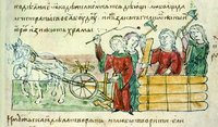 Возведения стен и распашка земель. Миниатюра из Радзивильской летописи. XV в. (БАН. 34.5.30. Л. 7)