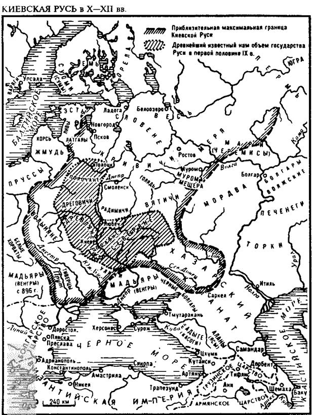 Славянская Древняя Русь и Византия были ровесниками, ибо возникли от одного пассионарного толчка. Находились они в разных географических зонах, имели разных соседей, и хозяйственная база у них была разной, но фазы этногенеза совпадали, с расхождением в пределах законного допуска. В первой трети XII в. Владимир Мономах и его сын Мстислав Великий, подобно Алексею и Иоанну Комнинам, решили все политические задачи, стоявшие перед Киевским государством. Древнее язычество было сокрушено как у вятичей на Оке, так и у половцев на Донце и Днестре. Полоцк был присоединен к Киевской державе. С Византией пришлось заключить мир, так как последнее столкновение на Нижнем Дунае закончилось очередным поражением. Выяснилось, что гораздо выгоднее иметь друзей, нежели врагов. Блестящая культура, спасенная в Византии Комнинами, широкой струей текла на Русь. Она легко воспринималась, и могло показаться, что Киев стал культурной колонией Константинополя. Однако дело обстояло куда сложнее.