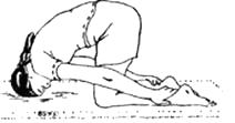 Выдыхайте и медленно наклоняйтесь вперёд до тех пор, пока не коснётесь лбом пола, или не приблизитесь к нему. Повторяйте те же действия, которые были описаны ранее для конечного положения основной техники. Спустя некоторое время, вдыхая, медленно выпрямите туловище и займите исходное положение.