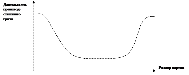 Рис. 3.1. Изменение длительности производственного цикла партии изделий в зависимости от ее размера