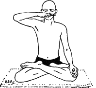 Начинающим следует выполнять описанную выше процедуру. Когда вы освоите её, то можете начинать делать бхучари мудру без всякой предварительной подготовки. Пристально рассматривайте пустоту перед своим лицом (где в предварительной процедуре находился мизинец).