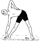 Медленно наклонитесь вправо, достав правой рукой носка правой ноги.