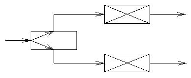 - параллельное соединение: - выходящий из первого аппарата поток подается сразу в несколько последующих (чаще всего с целью повышения производительности) (см. рис 2)
