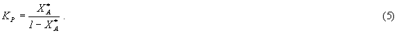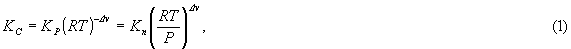 , то устанавливается состояние равновесия. Количественным показателем равновесия является константа равновесия К, определяемая как соотношение скорости прямой реакции к скорости обратной при равновесии. Для газов К выражается через парциальное давление газов Р, концентрации компонентов С и через молярные доли n. Соответственно: