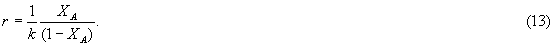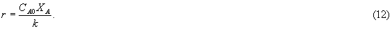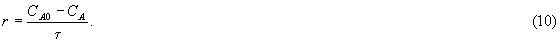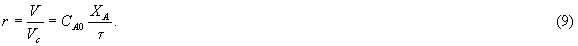 Уравнения (9) и (10) позволяют по четырем величинам, например для реактора объемом V из