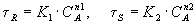 Селективность зависит от соотношения скоростей основной и побочной реакций или относительной скорости образования веществ R и S. Пусть основным является продукт R, побочным- S. Скорость их получения выражается формулами: